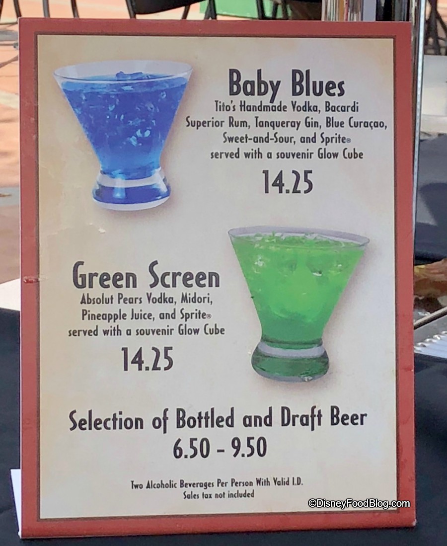 At pop-up bars around the park, guests can order two new seasonal drinks. Baby Blues is comprised of Tito’s Handmade Vodka (SHOUTOUT AUSTIN, TX!), Bacardi Superior Rum, Tanqueray Gin, Blue Curacao, Sweet-and-Sour, and Sprite! And you get a glow cube, of course.