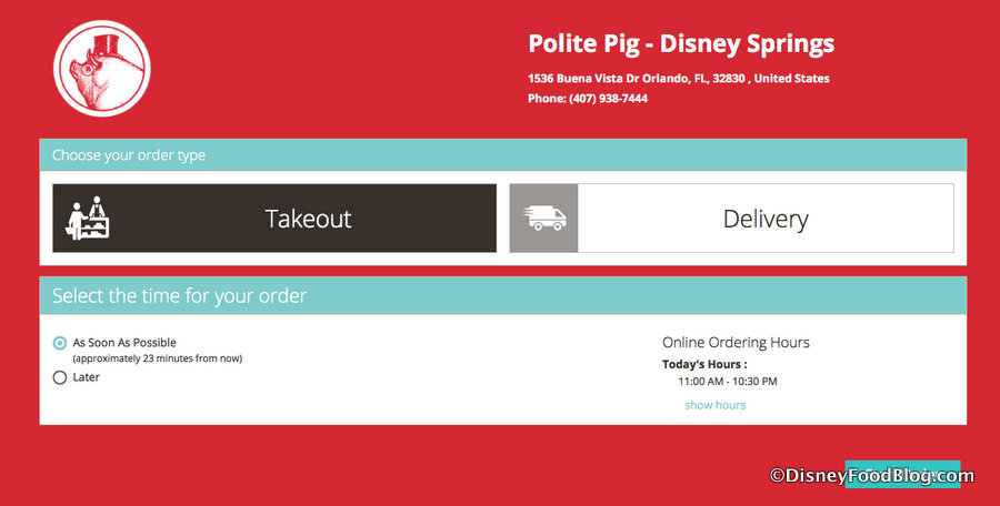 This is not to be confused with Mobile Order, which is available via the My Disney Experience app. Nope, to order online for The Polite Pig, you need to visit PolitePig.com and place your order there.
