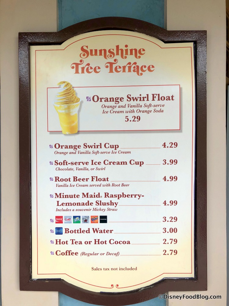 In Magic Kingdom today we noticed a change on the Sunshine Tree Terrace menu — instead of Citrus Swirl, the iconic park snack was now listed as “Orange Swirl.”