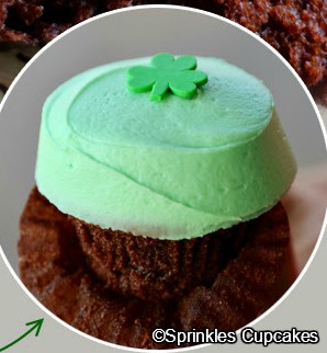 First up, let’s visit Sprinkles Cupcakes, where the new seasonal flavor is Irish Coffee.
