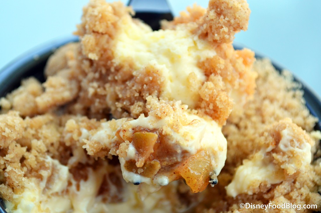 Underneath is a decent layer of cinnamon-spiced apples topped with some creamy cheesecake (more of a pudding consistency than a thick, rich cheesecake) and flavorful streusel. Those crumbs are totally yummy, and our only complaint is that there isn’t enough topping! We would have loved a thicker layer of the crumb, which added awesome flavor and great texture.
