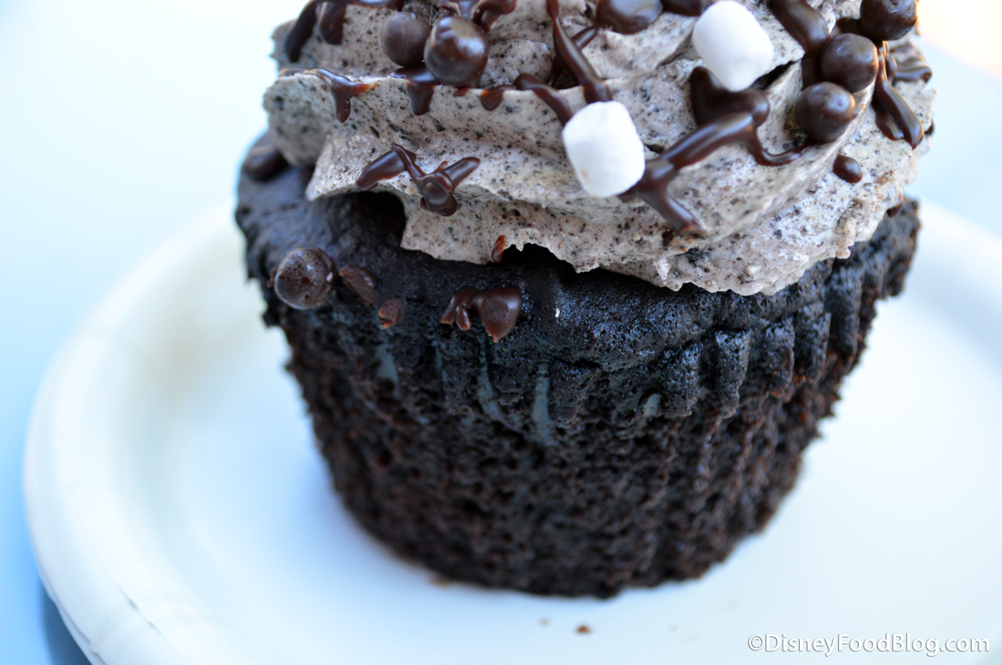 With the addition of the marshmallows and chocolate pearls, this is a small step above the typical Disney World Oreo/cookies and cream cupcake (which we love!).