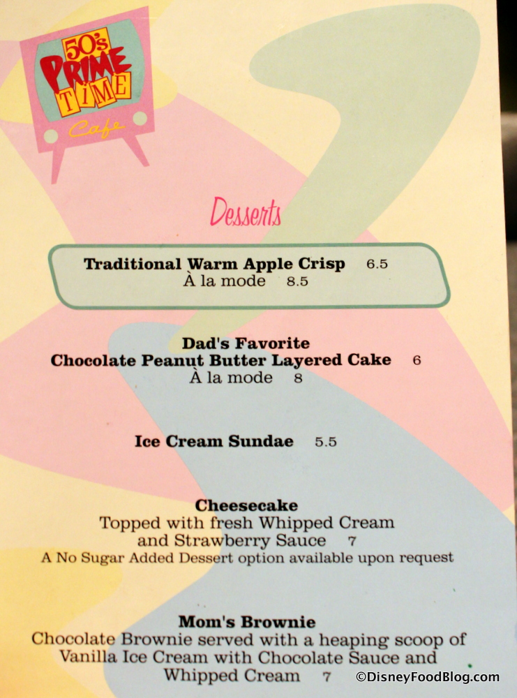 And even though the park is in the throes of dramatic re-imagining, we’re happy that some favorite dining experiences have remained. One such favorite is 50s Prime Time Cafe, the totally immersive, throwback-Thursday-everyday table service restaurant where your Aunts, Uncles, and Cousins berate you for putting your elbows on the table and the menu is packed with comfort food.