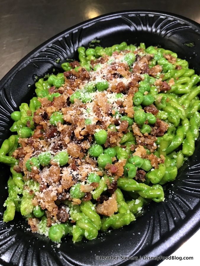 Heather tried the Green Miso Pesto Pasta: gemelli pasta tossed in spinach and miso pesto topped with bacon, sweet peas, and sprinkled with parmesan.