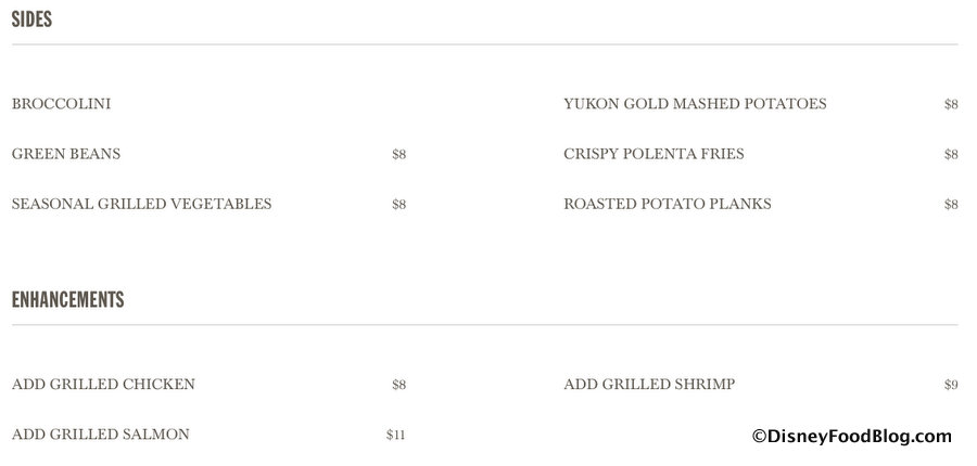 Sides and Enhancements will be available to round out the meal.