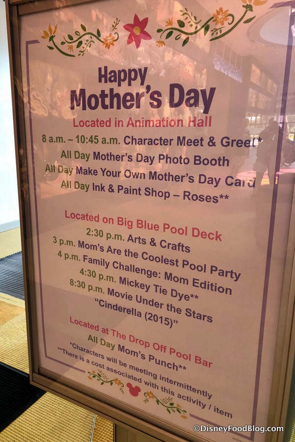 Mark, we would expect to see Mothers’ Day treats, and there are frequently Mothers’ Day brunches at a number of restaurants. Those locations will be announced closer to the date. Some resorts may have Mothers’ Day activities (you’ll want to check when you arrive), and Disney Springs shops and restaurants may also offer activities, special items, or discounts. These would all be announced closer to the date (if they’re announced at all — sometimes they’re available on the day of but not announced in advance). Watch DFB for updates! We share Mothers’ Day events as they are released!