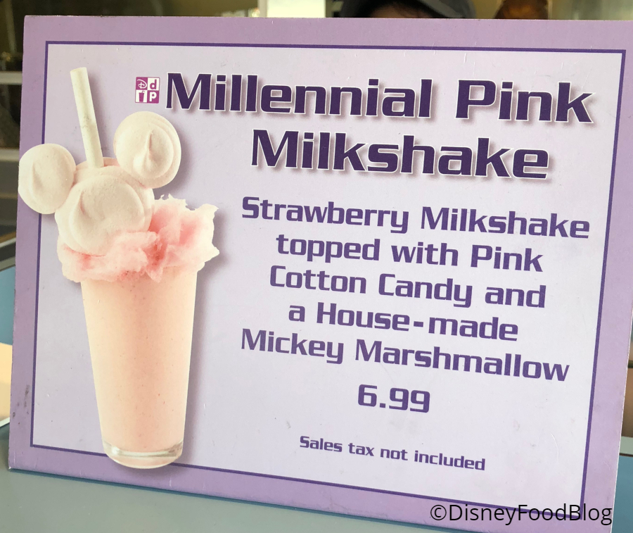 Auntie Gravity’s Galactic Goodies is jumping on the Millennial Pink trend with a Millennial Pink Milkshake! This strawberry milkshake is topped with pink cotton candy and a house-made Mickey marshmallow! (We’re in for the marshmallow alone!)