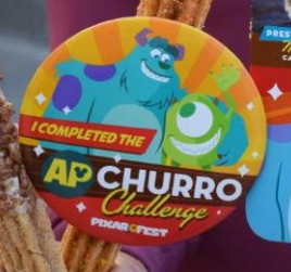 But for Annual Passholders, there’s a limited time challenge that’s all about the churro! Thanks to @DisneylandAP on Twitter, we’ve got a pic and the skinny on how to score a Pixar Fest-only Monsters button (oh — and four tasty churros!)!