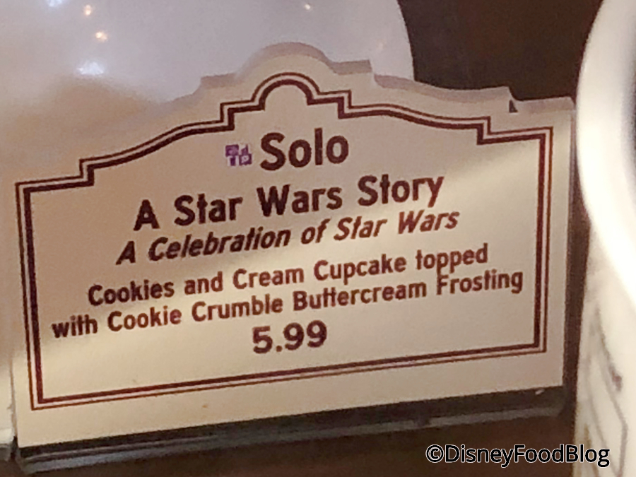 At Trolley Car Cafe (home of the new Carrot Cake Cookie!), guests can celebrate the release of Solo: A Star Wars Story with a cupcake!