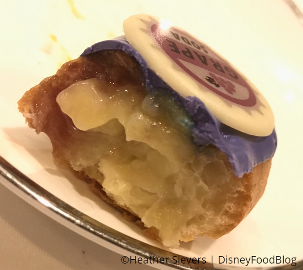 Similar to the Pixar Fest Peanut Butter and Jelly Eclair that we tried at Jolly Holiday, this one also has a bit of grape jam along side a more custard-y vanilla filling. It was about a half-sized eclair (perfectly tea party sized) and super tasty.