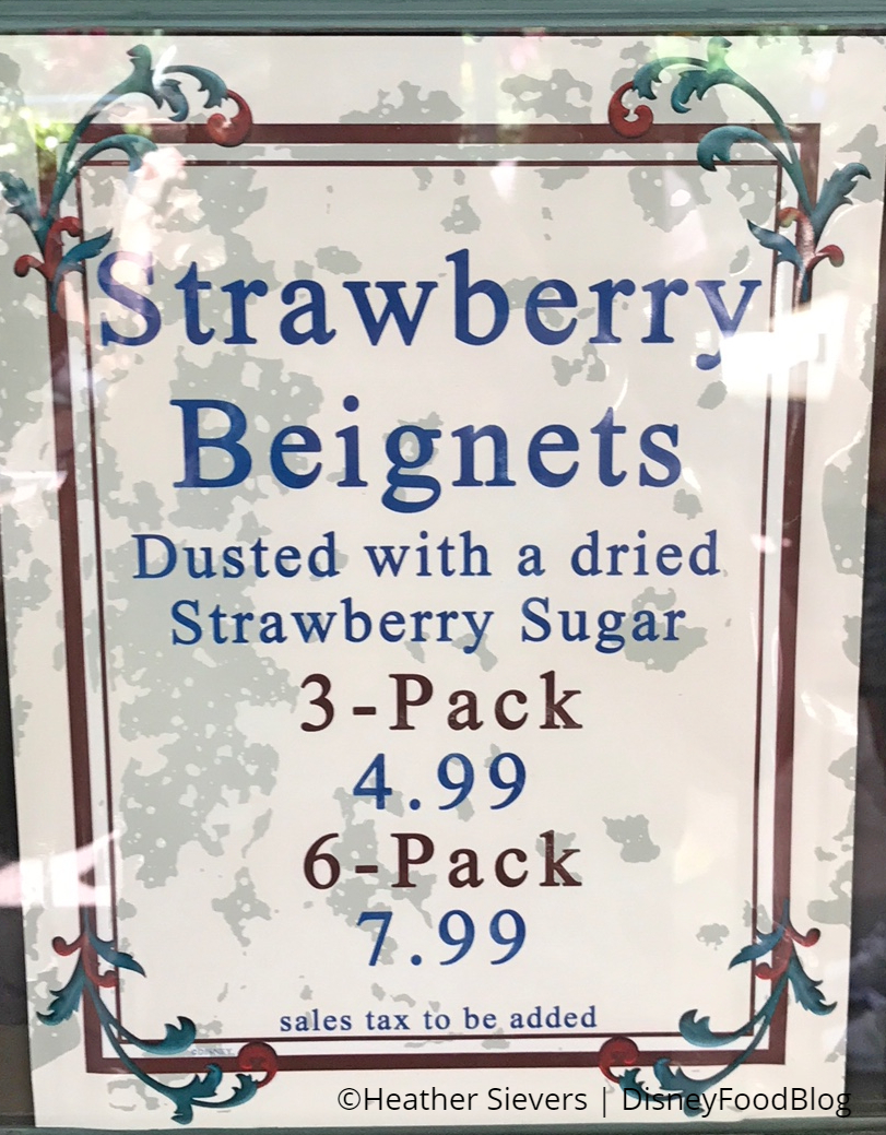That’s right! In addition to the traditional Mickey-shaped beignets that are always available at this counter service locale, the fine cast members in this New Orleans Square mainstay are now serving up Strawberry Beignets!