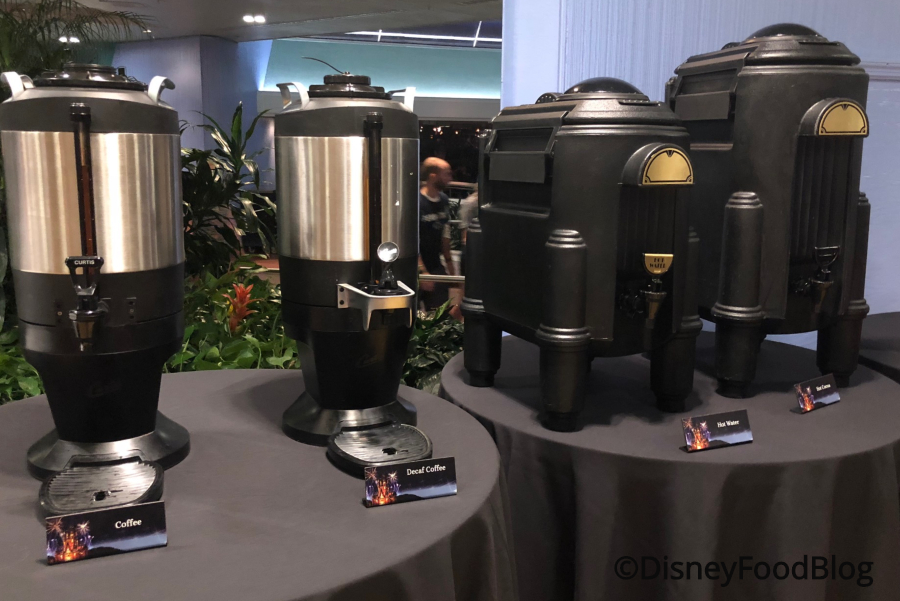 There’s coffee — caffeinated and decaf — plus hot water (for tea bags) and hot cocoa.