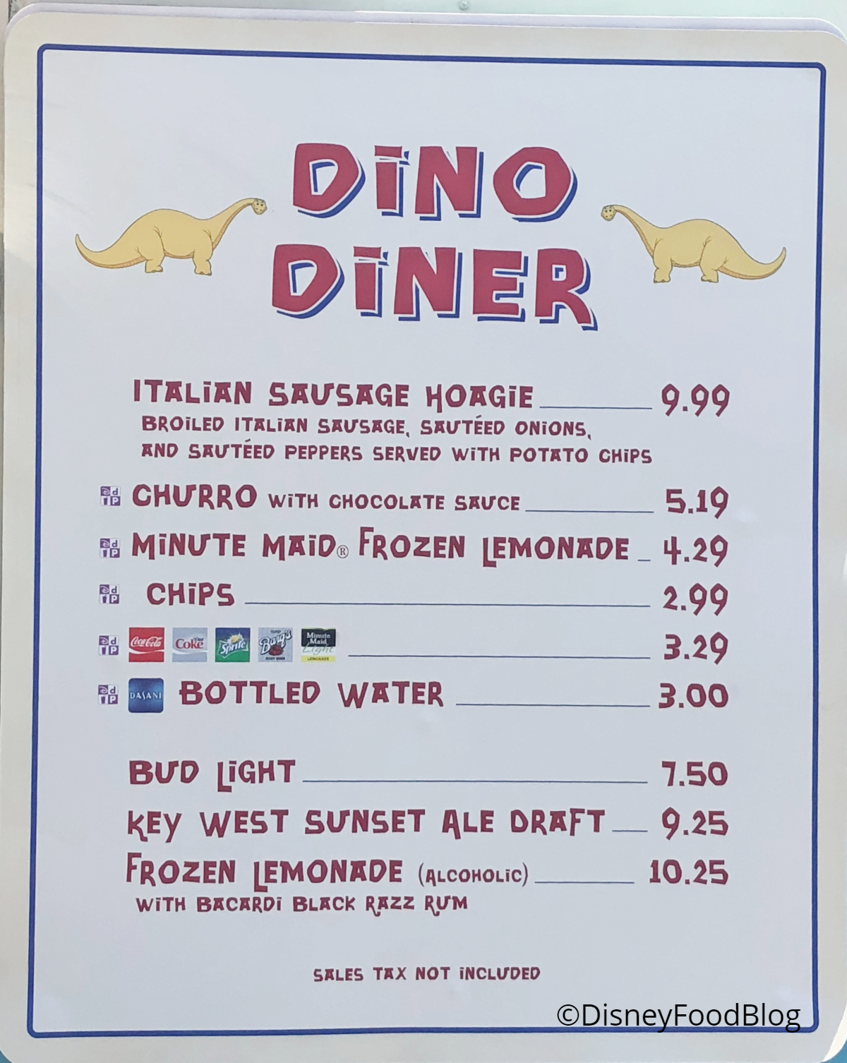 Dino Diner has lost its Nachos Supreme and added an Italian Sausage Hoagie. Don’t forget there’s a churro on the menu here!