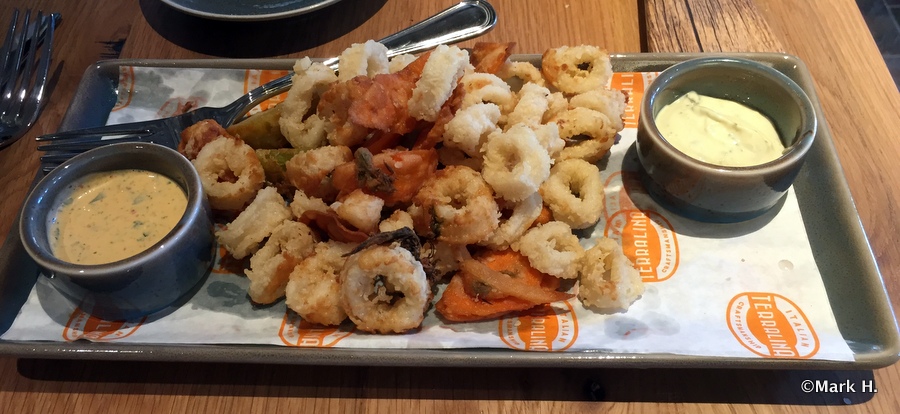 He also tried the Calamari appetizer, and shared that it was lightly breaded and slightly chewy, “which for me means great.” 🙂