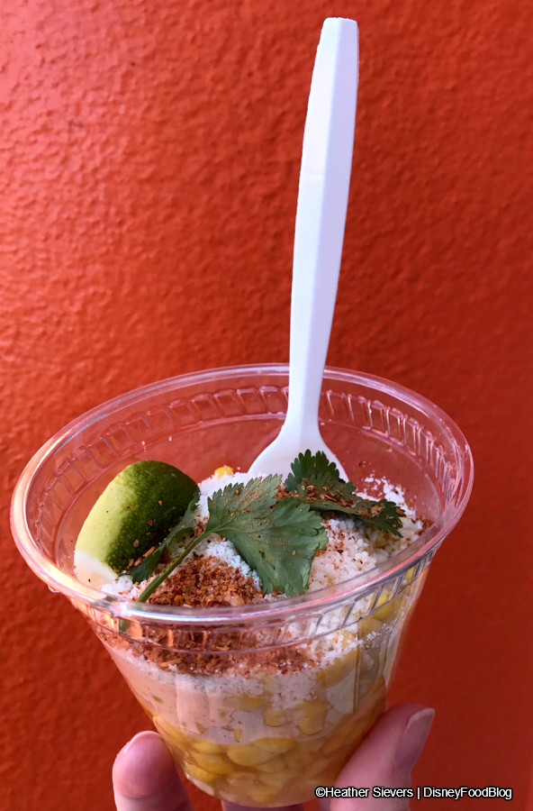 The presentation of the Champions Corn Cup is great — with bursts of color from the lime, a couple of cilantro leaves, and a smattering of the Chili-Lime Spice. (This is Tajin. Let’s just call it Tajin.)