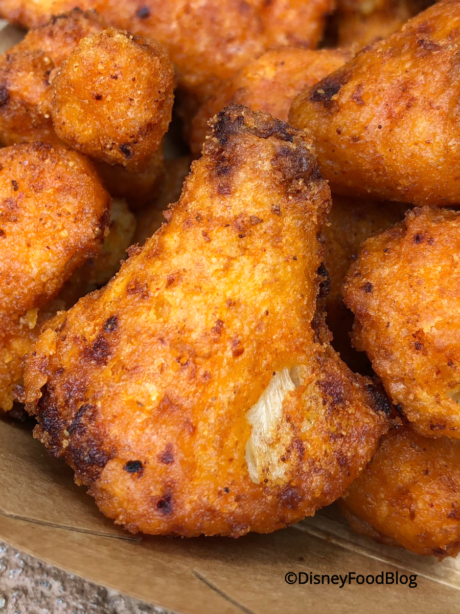 While they’re described as spicy, we didn’t get a lot of spice from these. Truth be told, there was a definite lack of added flavor, so what you get is straight up cauliflower and (admittedly tasty) fried batter, but no real seasoning.