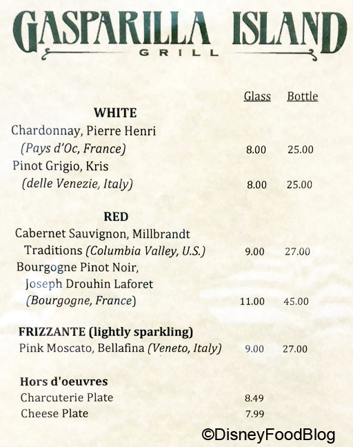 The Barefoot Bar will also at times have a Frosty Pineapple Slush (think a slushy version of the Spiked Dole Whip) here. You won’t find it on the official menu since it isn’t offered consistently. The slush is $11.00 when offered.