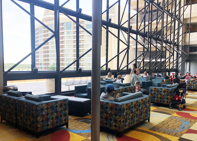 Disney is also working on a refurbishment on the back portion of the seating area in the End Zone Food Court. For now you can find extra seating inside the arcade across from the food court entrance.