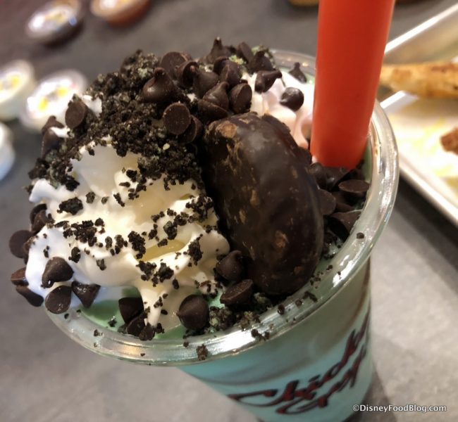 Triple Double Mint blends mint chocolate soft serve with crushed Oreos, chocolate mints, chocolate syrup, and tops it all with whipped cream.