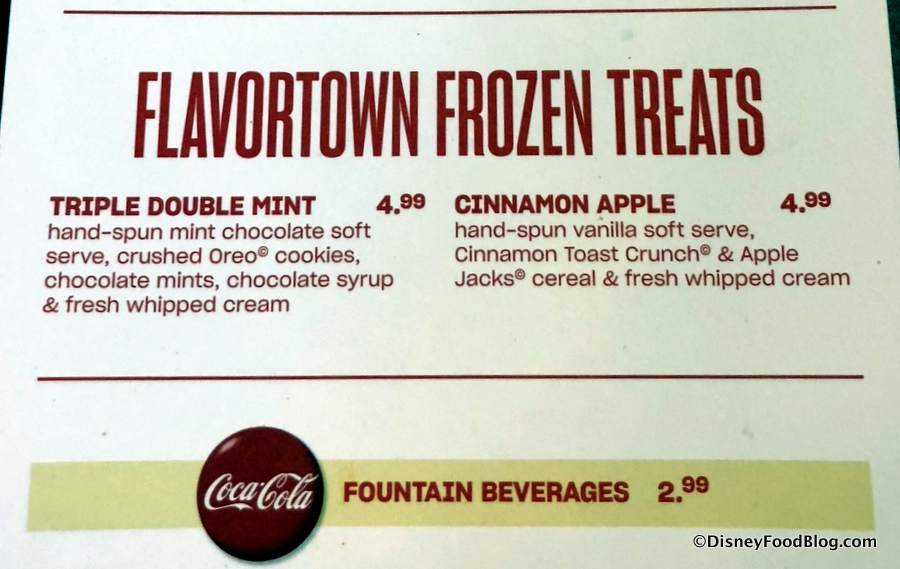 Cinnamon Apple is vanilla soft-serve with Cinnamon Toast Crunch and Apple Jacks cereals, also with whipped cream!