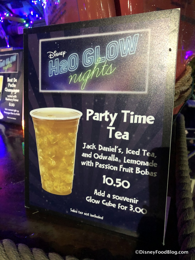 Specialty sips for the evening include GLOW drinks like the Black Light Cherry Lemonade and Party Time Tea.