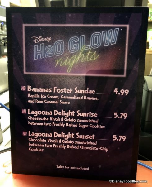 Disclosure: In nearly all circumstances, Disney Food Blog writers and photographers pay full price for their own travel, hotel, food, beverage, and event tickets. We do this because it’s important to us as journalists to ensure not only that we give you unbiased opinions, but also that you can trust us to do so since we’re paying our own way. On rare occasions, when we are invited by a company to attend a preview as media, and when we choose to accept that invitation, we will always make you, our readers, aware of that situation. We were invited to experience H2O Glow Nights. However, the food items we ate were purchased by Disney Food Blog. Note that when we attend events as media we are 1) Not required to review that event/food on any of our channels, and 2) Not required to review that event/food favorably. You can always count on DFB to give you a 100% unbiased and honest review of any event that we attend, food that we eat, or beverage that we drink. You can see more in our Disclosure Policy. Thank you for reading. — AJ