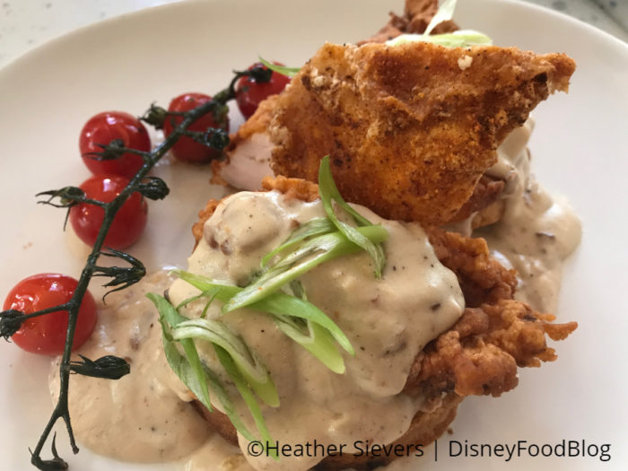 Country Biscuits and Gravy is a bit of a misnomer for the next dish, the star of which is actually a crispy fried chicken breast! Yeah, you can hit us up with bonus fried chicken anytime. The bacon gravy (!!) is delicious and smoky, and there’s plenty of it on the plate.