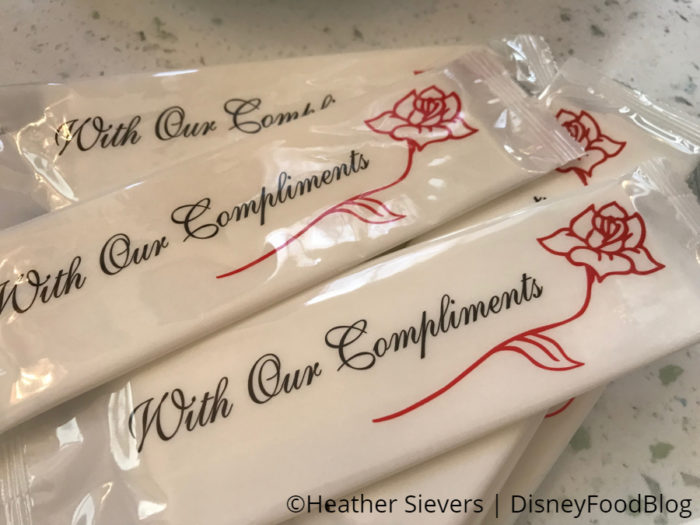 On Heather’s visit, she received a handful of these complimentary hand wipes.