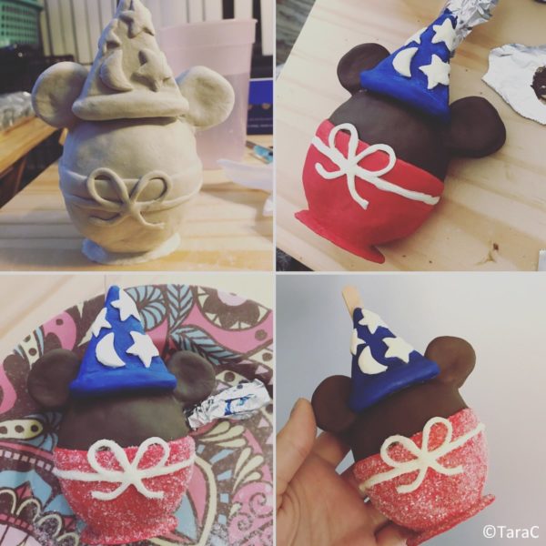 Disney character Caramel Apples are one of those iconic, must-have treats when you’re at the Disney Parks. And recently DFB reader Tara shared a super cool Sorcerer Mickey Apple she was sculpting and painting for her sister. AMAZING!