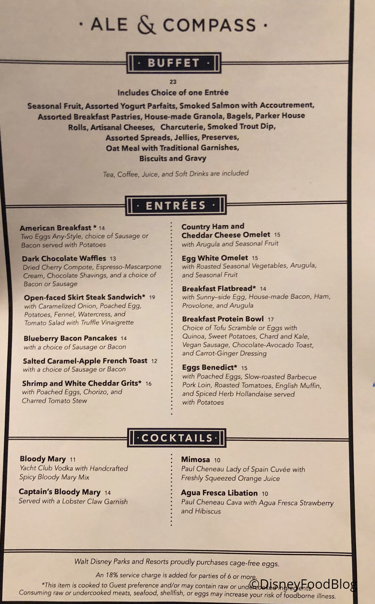 Just tried the buffet this past week and was very disappointed, the Captains Grille breakfast buffet was one of my favorites. We decided to check out the new Ale and Compass buffet and found it lacking. Not enough breakfast options on the buffet, not even scrambled eggs and bacon. Service was a bit lacking as well even though the restaurant was crowded at all. Won’t be returning any time soon.