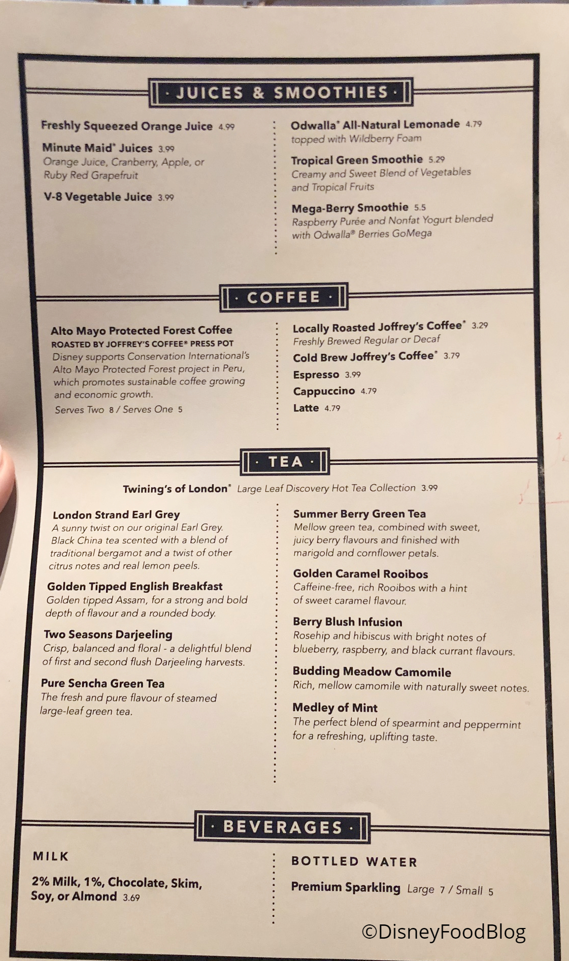 Trisha, I’ve updated the post to reflect the menu, as tea, coffee, juice, and soft drinks are included. Thanks for reading!