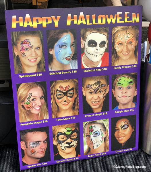 If you, or your kiddo, are looking to have your face painted for Mickey’s Not-So-Scary Halloween Party you’re in luck! The face painting station is now offering Halloween themed designs. You can find this location near the Rock ‘n’ Roller Coaster. Which one are you picking?