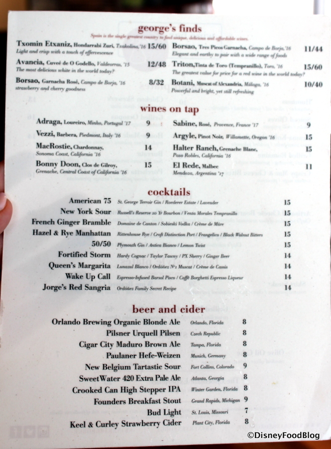 Wine Bar George has a unique niche, even with the abundance of terrific offerings in Disney Springs. Truly outstanding food, a more intimate setting (which can be difficult to find in Disney World), and the chance to try some fantastic wines make Wine Bar George well worth a visit.