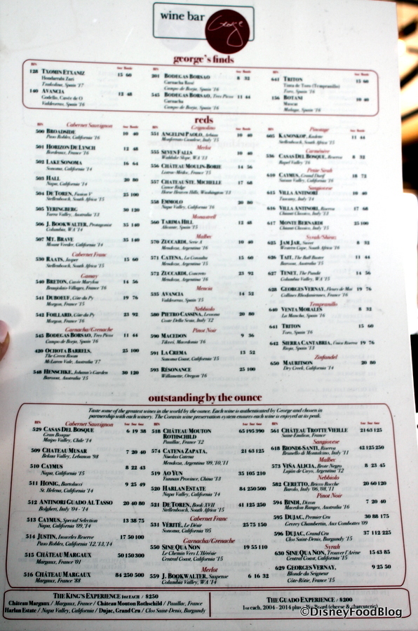 You’ll also notice Outstanding by the Ounce offerings. The Outstanding by the Ounce program allows guests to try very high end wines by the ounce at an affordable price.