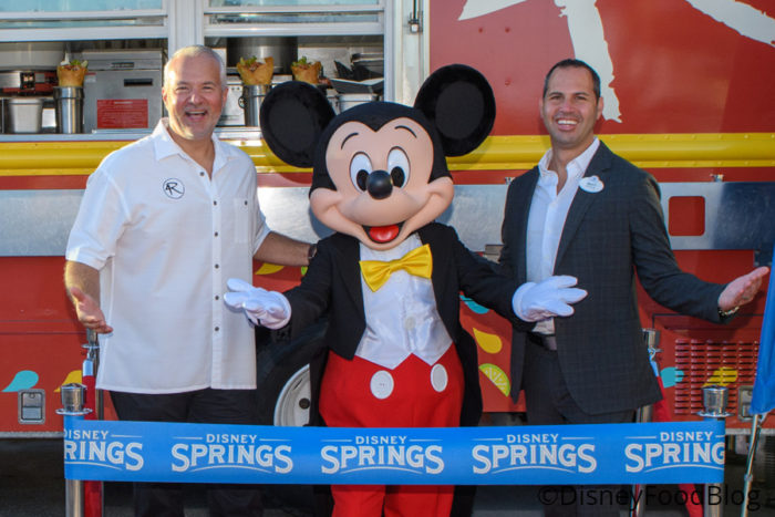 The cutting took place with Matt Simon, Vice President of Disney Springs, John Rivers, founder and CEO of the 4R Restaurant Group, and a certain main mouse we know!