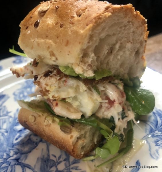Pork Blah Blaa (yes, Raglan Road has the most fun-reading menu in Disney World), takes shaved porchetta and tops it with a Wild About Celtic chutney, caramelized onions, and crispy crackling… all served on a blah bun for the Lunch Sandwich menu.