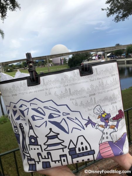 In addition to all the great eats and sips at this year’s Festival, there’s also a lot of exclusive merchandise, including this gorgeous Disney Dooney & Bourke handbag featuring Chef Mickey and Foodie Figment!