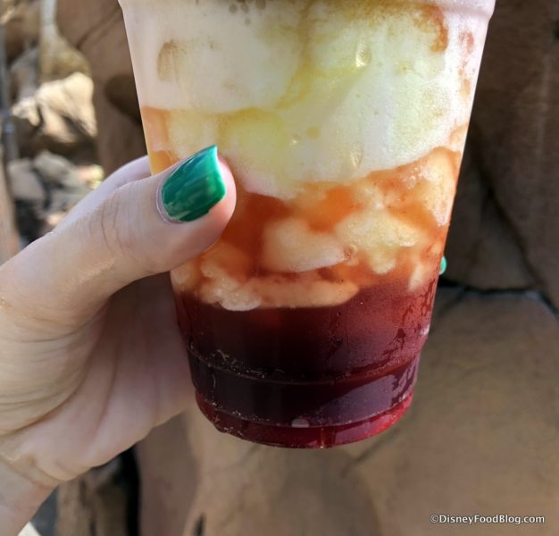 Guests have long been able to grab a refreshing frozen slush at Prince Eric’s. But the Witch’s Frozen Brew takes two frozen slush favorites — Frozen Lemonade AND Frozen Coca-Cola — and swirls them with a whole bunch of the spot’s recently added flavored syrups!