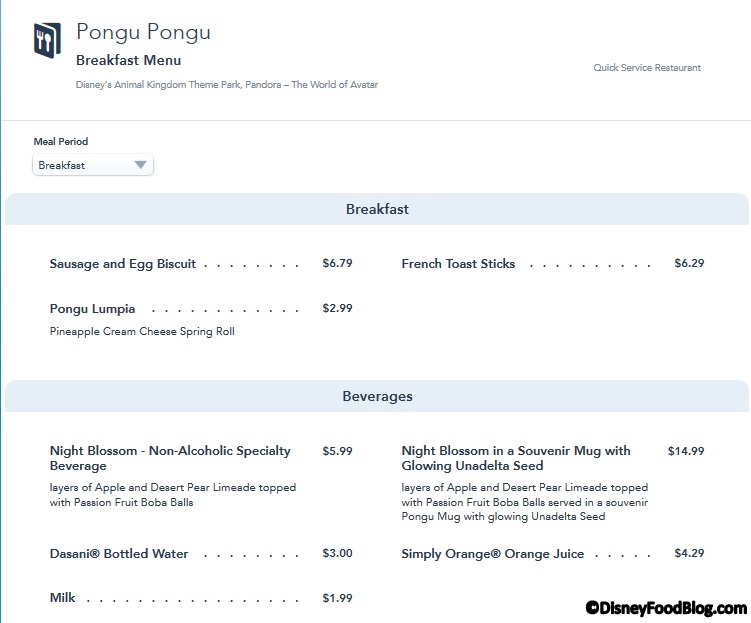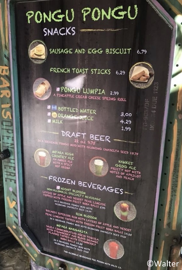 , the popular watering hole and snack stop in Pandora — The World of AVATAR, has recently posted their new breakfast-included menu sign!