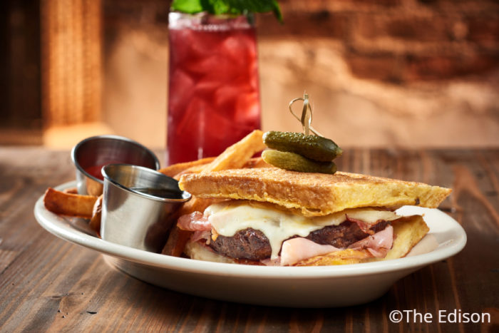 For the month of September, diners can order the Croque Burger! The Croque starts with The Edison’s signature sirloin, short rib, and brisket blend. The patty is topped with honey mustard, maple-cured ham, and swiss cheese. The whole thing is served on sourdough bread that’s been dipped in egg and grilled.