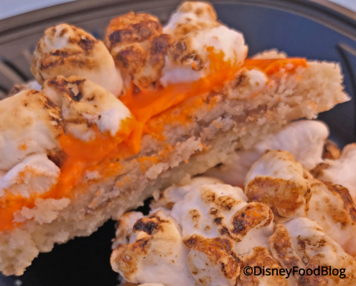 The orange on top of the hand pie (sort of like the Adventure Tart Jolly turned out for Pixar Fest!) is orange fondant, and inside the pie is a thin layer of sweet potato seasoned with cinnamon and other warm spices.