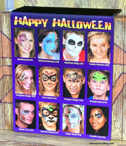 At the Outpost they are now doing Halloween themed face painting. Which one will you or your kiddo choose? We’re leaning towards the Pumpkin Magic!