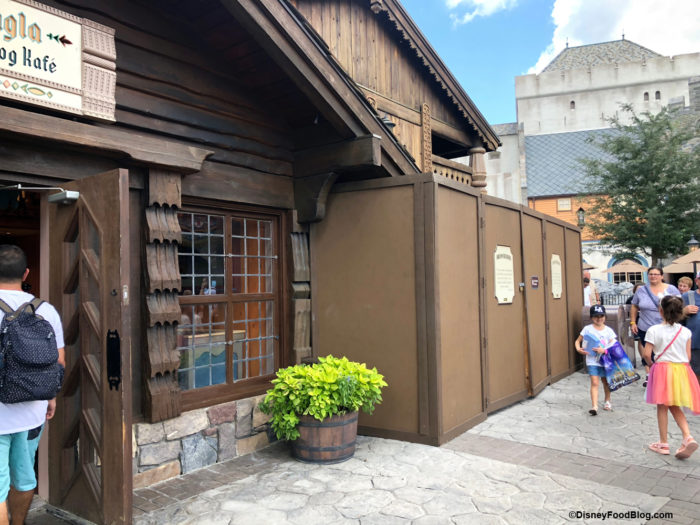 In Norway the Kringla Bakeri og Kafe has been open for a few weeks, but we can still see some work with a construction wall in front of the old entrance to the merchandise store.