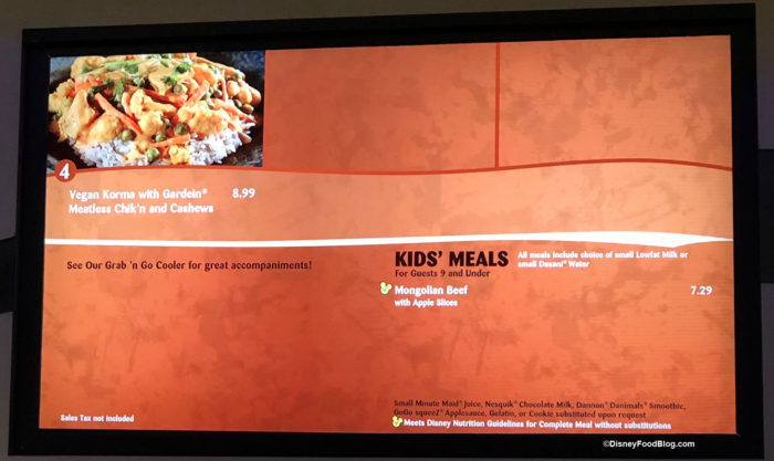 We did find that the Vegan Flatbread, Spicy Fish Taco, and kids’ Grilled Cheese Sandwich were removed from the menu at Sunshine Seasons.