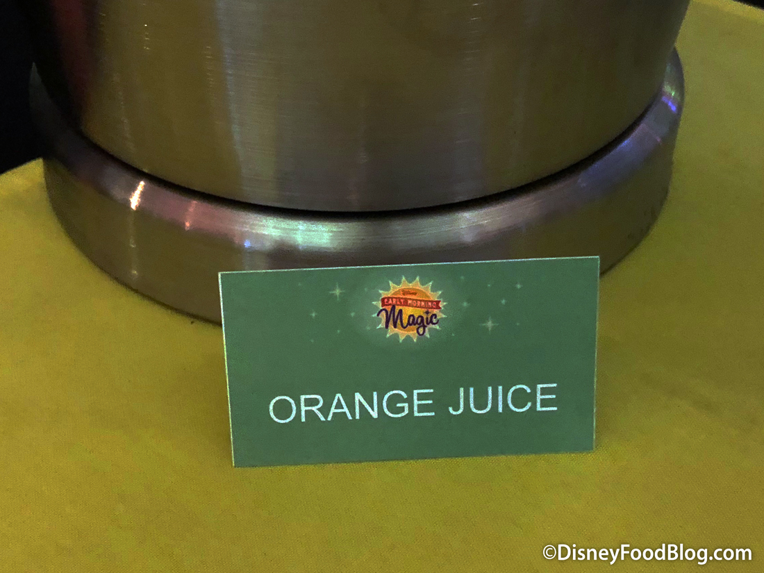 Plus, there are the breakfast drinks — coffee, tea, orange juice, apple juice, and water.