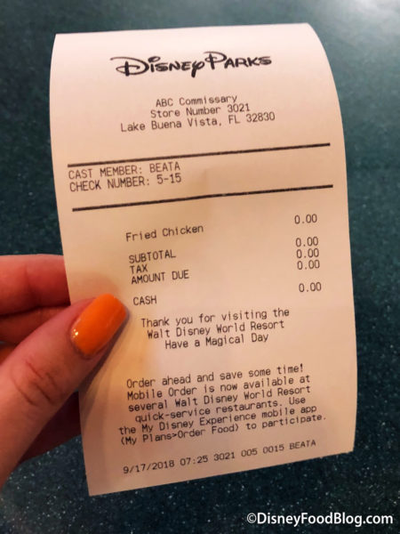 Your breakfast is included with your Early Morning Magic ticket, so don’t miss it! After all how many times do you see a receipt like this at Disney? 🙂