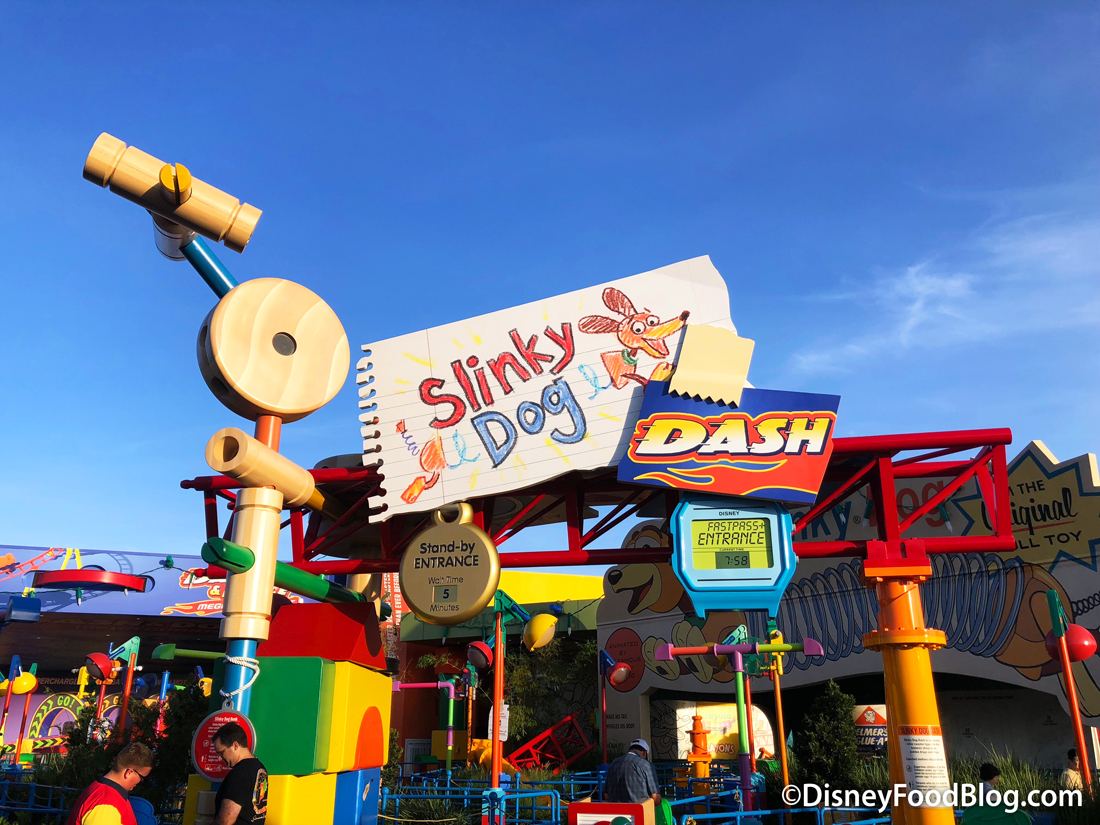 We could even choose our row for Slinky Dog Dash. People who wanted the first row did have to wait behind one or two groups, but that is about it for the wait. (FYI, we prefer the back row — the first row has a view of…huge dog ears, plus it’s slower than the ride at the back, similar to Big Thunder Mountain Railroad.)