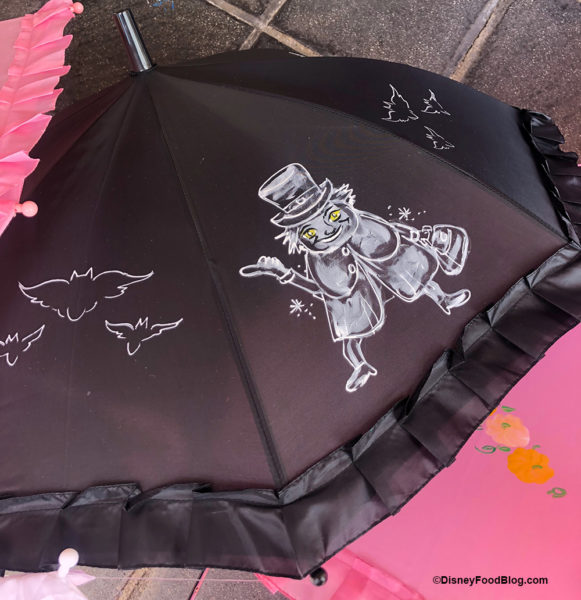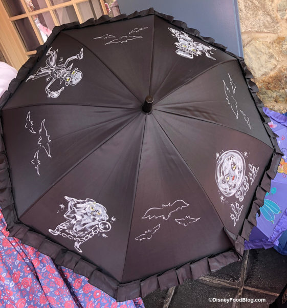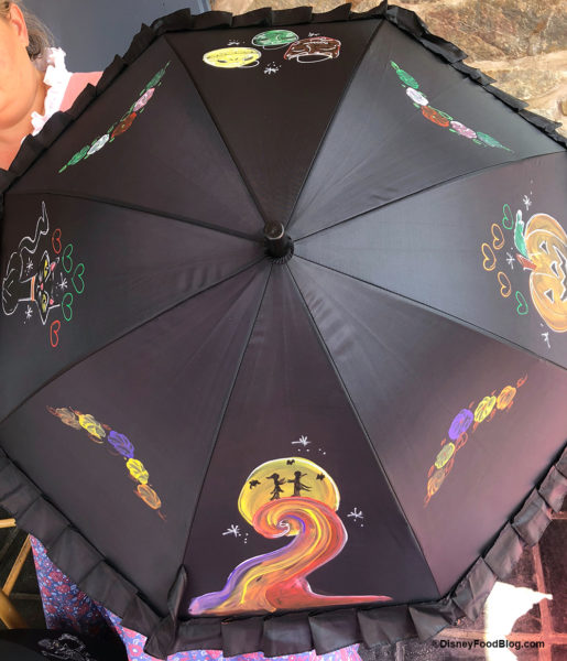 We showed you the special parasols in Epcot for the Food and Wine Festival – well, the Magic Kingdom Parasol Artists are busy too. These Haunted Mansion and Nightmare Before Christmas Parasols are perfect – especially if you’re attending the Halloween Party!