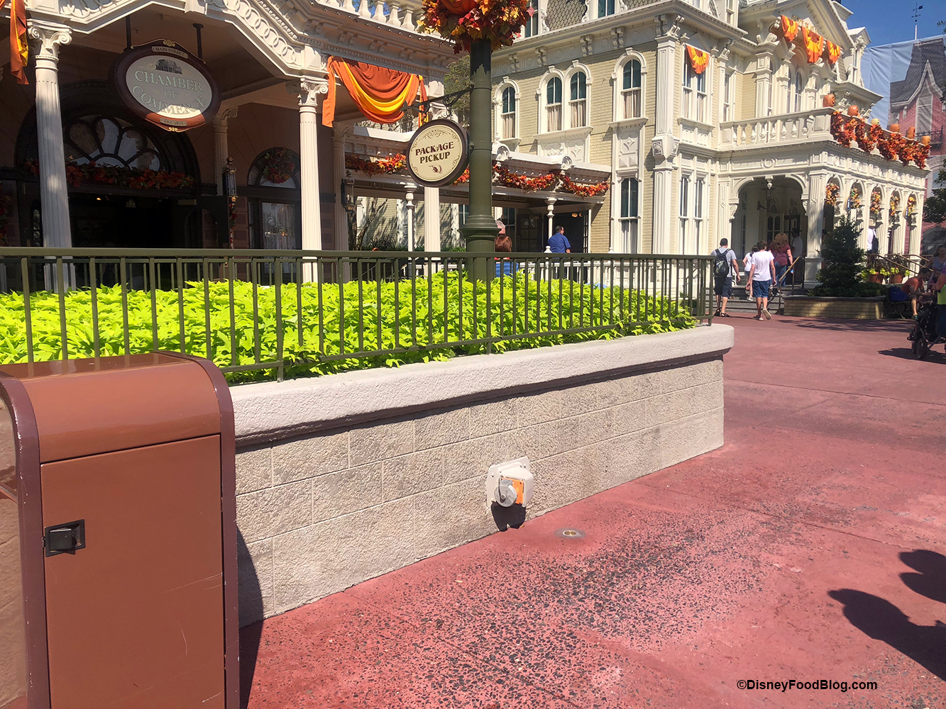 We found the popcorn cart that is usually located by Guest Services is still missing – and now the umbrella has been removed.