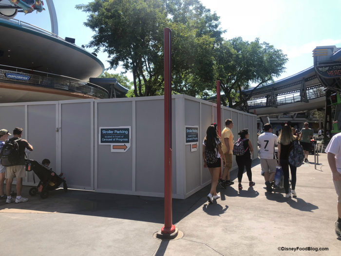 There are some construction walls around Tomorrowland. You’ll have to navigate around some on your way to the Peoplemover or Space Mountain.